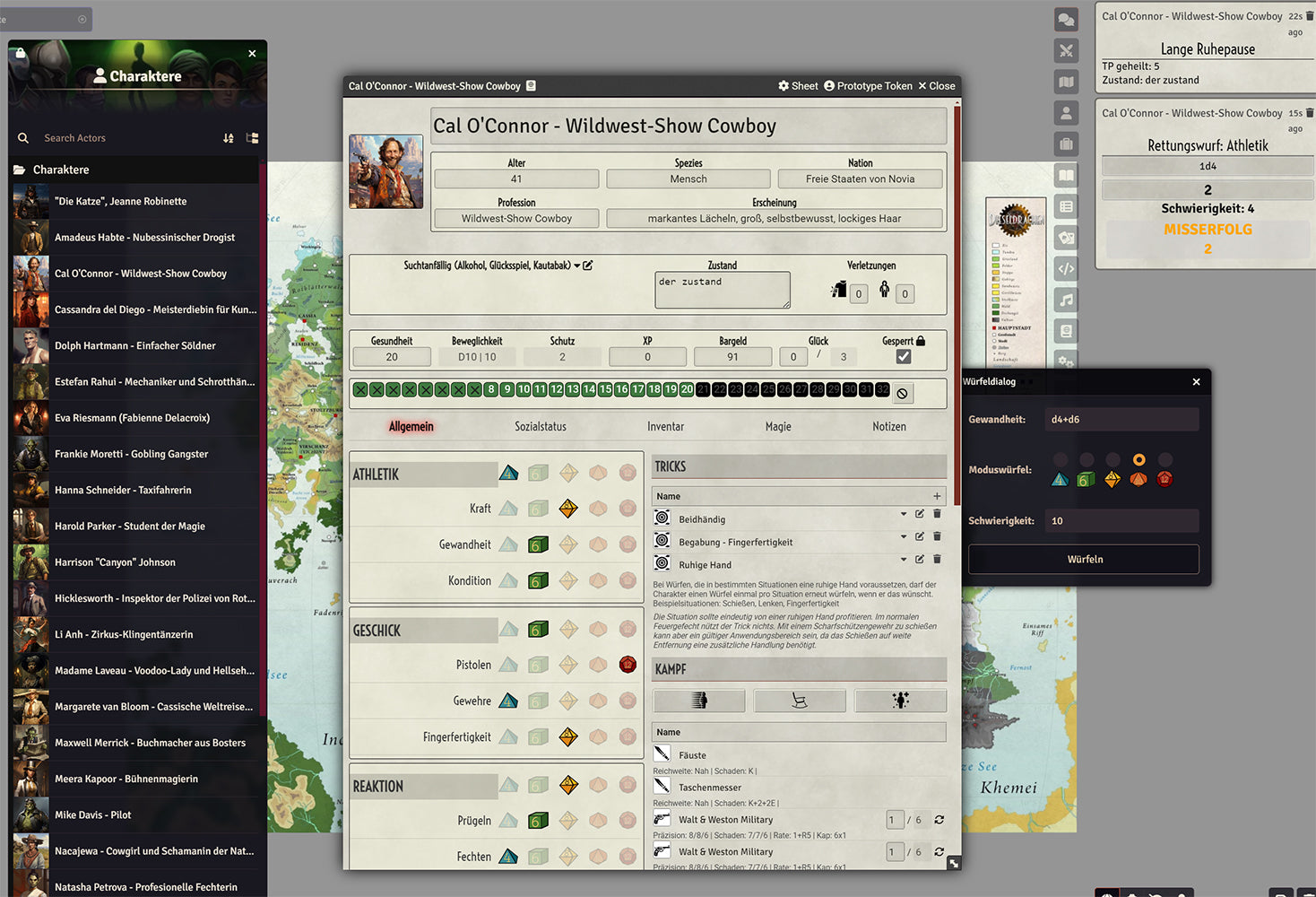 Das kostenlose DieseldrachenVTT-System beinhaltet alle Regelfunktionen und alle Arten von Würfen sowie Charakterbögen UND als besonderer Bonus ALLE BEISPIELCHARAKTERE des Regelwerks!